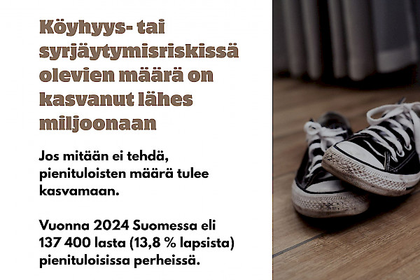 - 27.3.2026Köyhyys- tai syrjäytymisriskissä olevien määrä on kasvanut lähes miljoonaan